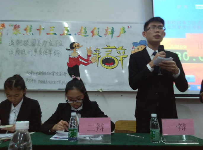 本次辩论赛辩题为:遏制校园暴力应不应该降低刑事责任年龄。该辩题既是两会期间专业学者们关注度比较高的话题,也很好地结合我系的专业特色,让学员们能够通过所学理论知识来分析社会热点问题,达到学以致用的目的。经过开篇陈词、攻辩、攻辩小结、自由辩论和总结陈词五个环节,一场没有硝烟的战争激烈地上演着。各支队伍的辩手们配合默契,他们妙语连珠、当仁不让。他们旁征博引,将整个比赛带入了一个又一个高潮。在总结陈词环节,双方四辩针对对方逻辑上的漏洞逐一回击,思路清晰,引经据典,才思敏捷。现场高潮迭起,引得学员的阵阵掌声。