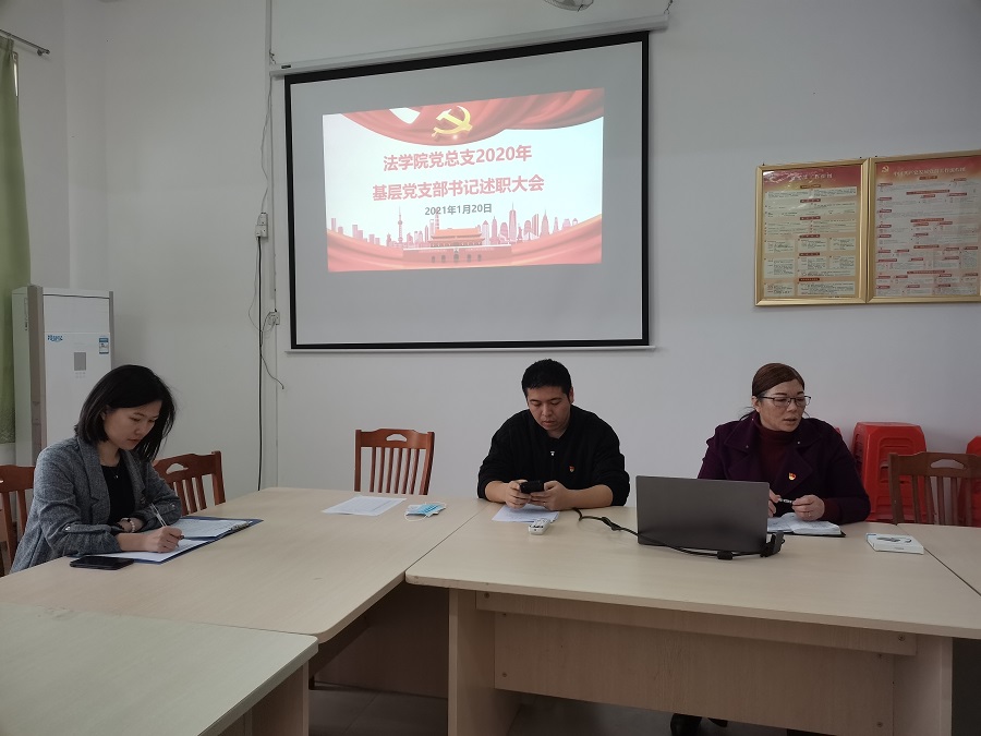 教工党支部书记唐犀、17级学生党支部书记梁嘉仪和18级(含19级、20级)学生党支部书记展示了各支部在“三会一课”组织生活、“两学一做”学习教育、学习十九大精神专题和《习近平谈治国理政》第三卷学习等方面的成果,并从理论学习、实践活动、存在问题、工作展望等方面分别作出年度工作汇报。