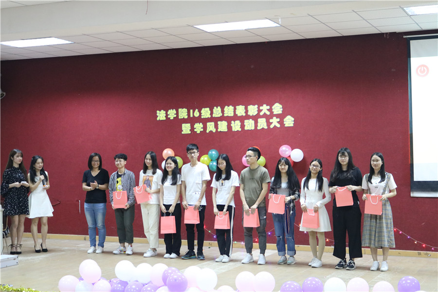 大会由视频“记忆中的我们”开始进入,接着各年级委员进行年级成绩分析汇报、年级考勤分析和年级总结分析,然后优秀学生代表陈嘉同学分享个人学习经验。先进班集体代表杨雪地向大家分享了一些班级建设的经验,第一是强大的凝聚力是班级的灵魂和精髓;第二是营造良好班风、学风是班级建设的关键;第三是团结进取的班委会是班级发展的坚强领导核心。最后大会表彰了上学期学风建设活动先进集体和先进个人,并为获奖集体和个人颁发了奖品。