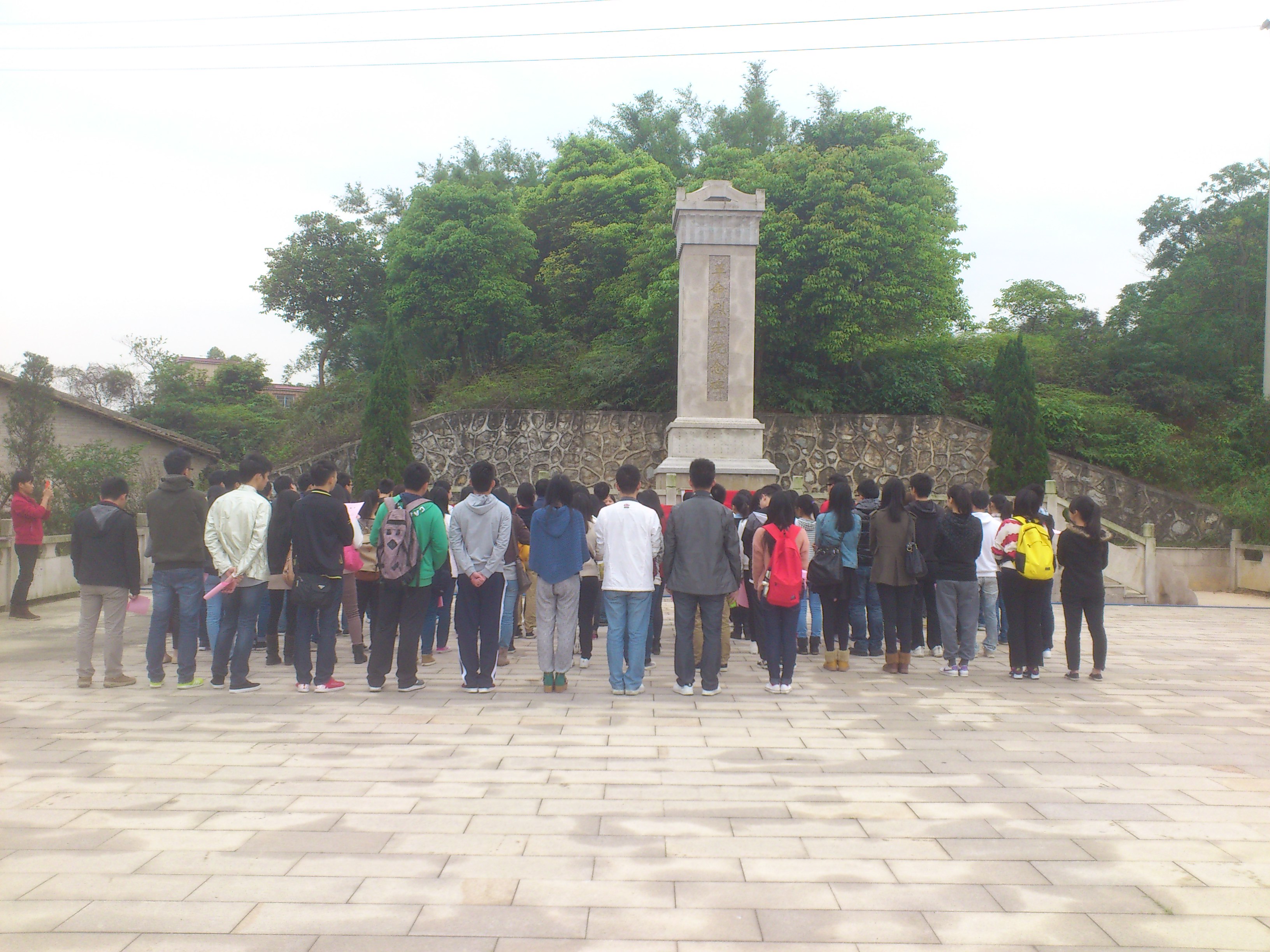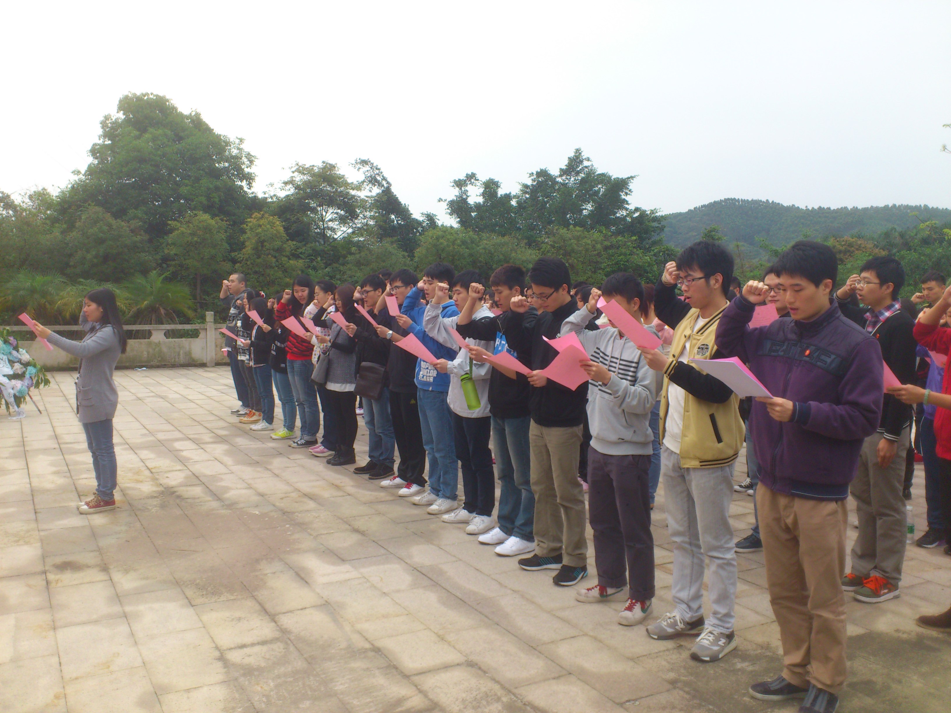 (全体学生党员面对革命烈士碑,缅怀革命先烈)