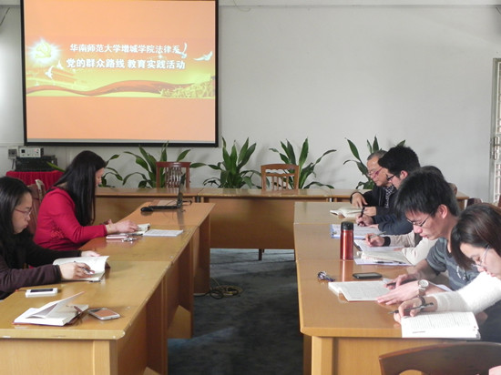 根据《华南师范大学增城学院深入开展党的群众路线教育实践活动实施方案》的总体部署和安排,法律系于3月19日上午在教学楼d2-206组织系领导班子、各党支部书记集中学习。出席本次集体学习的人员有法律系主任陈文椿、主任助理欧洁梅、系党总支书记陈秀图以及各党支部书记,本次会议由陈秀图主持。