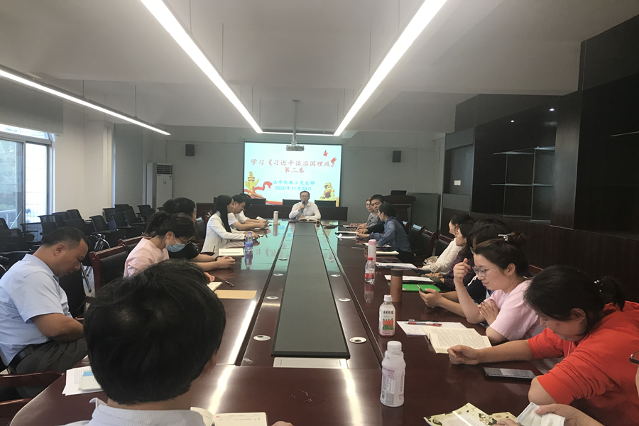 11月26日,122cc太阳集成游戏教工党支部举行《习近平谈治国理政》第三卷专题集中学习研讨。学院党支部书记唐犀同志主持,党支部委员于明清同志带领“习语快递”朗读,党支部成员围绕深入学习贯彻《习近平谈治国理政》第三卷,结合学工作实际,深入开展集中学习研讨。