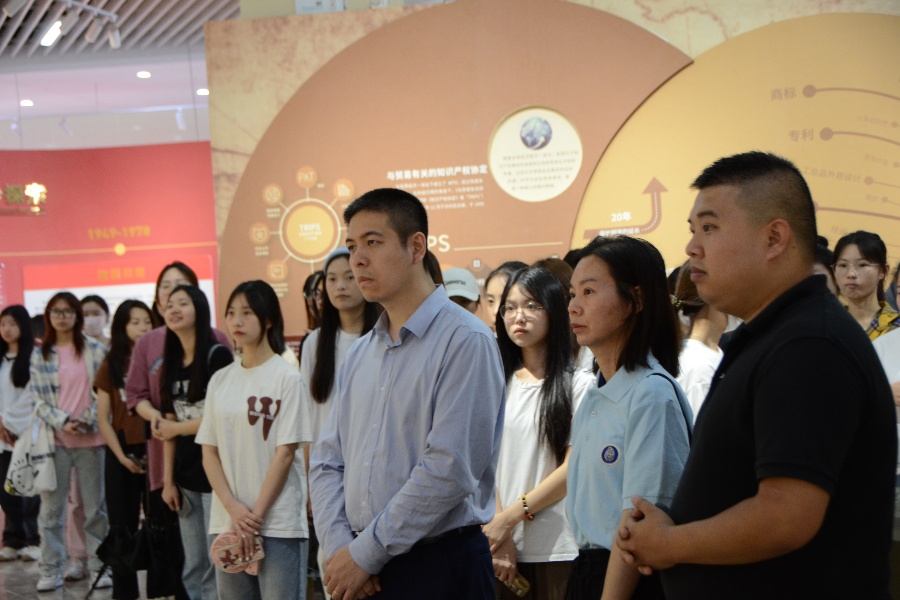 师生们在讲解员的带领下参观国家知识产权局专利局专利审查协作广东中心普法基地,深入了解了知识产权制度的发展历程。讲解员介绍道,经过数百年的实践和发展,知识产权制度逐步深化成为一种激励创新、繁荣文化、促进经济增长的机制,并正成为着国家核心竞争力的重要体现和国际贸易的同行规则。紧接着,讲解员为大家讲解了党领导下的中国特色知识产权发展之路,实施知识产权战略,对于转变我国经济发展方式、提升国家核心竞争力、满足人民群众日益增长的物质文化生活需要,具有重大战略意义。