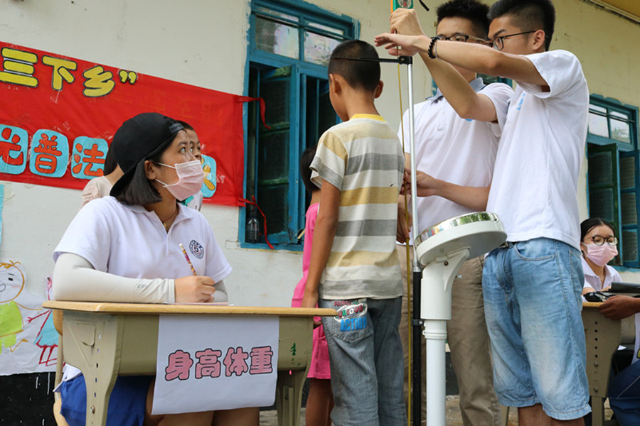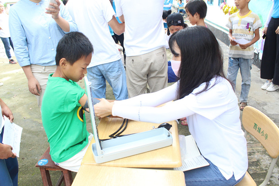 7月13日,为了全面贯彻“健康第一”的指导思想,响应“三下乡”中的卫生下乡,并加强学生体质监测,122cc太阳集成游戏阳光普法服务队医疗卫生组为西埇小学的学生们进行了一次简单的体检。西埇小学参与本次支教的全体学生参加了本次体检,西埇小学后勤主任陈华荣老师,122cc太阳集成游戏党总支陈秀图书记和本次“三下乡”带队老师张仁瀞也到达体检现场,了解和关注体检中存在问题的学生。
