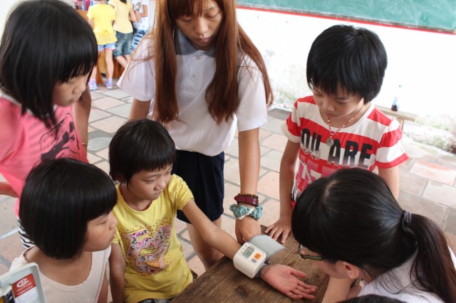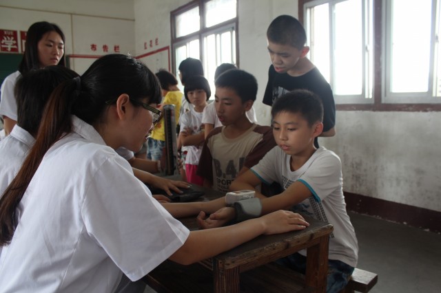学生们有秩序的参与测量血压