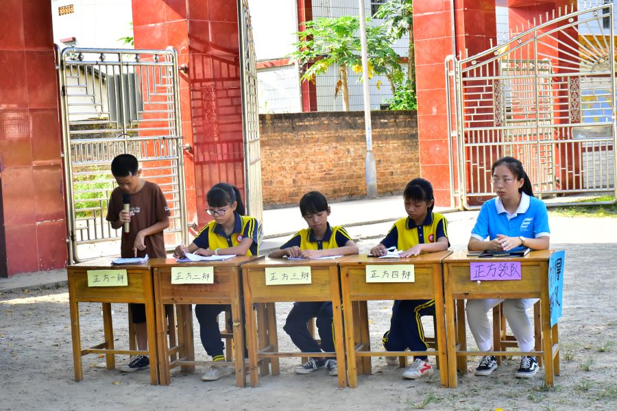 小题大做精准备,唇枪舌战论“英雄”——阳光普法服务队在坪上小学举办辩论表演赛