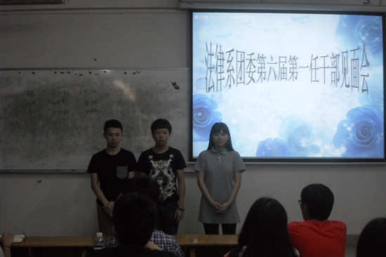 6月16日晚,法律系团委在B201召开第六届第一任干部见面会,本次会议到场的人员主要有书记叶小办老师,副书记罗林浩师兄,组织部部长伍家立师兄、秘书长杨洁妆师姐以及新任的各部门部长。