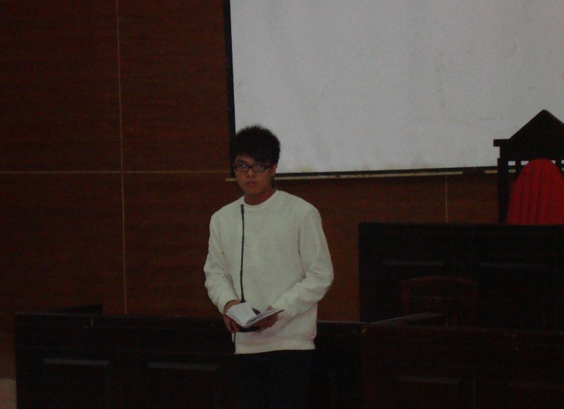 会议还没开始,各部门成员早已有秩序地坐定等候,可见各部门对这次会议的重视。会议一开始,先由法律系学生会主席黄志玮做开场白,然后让各部门派出代表上台对本学期的工作做一个总结。