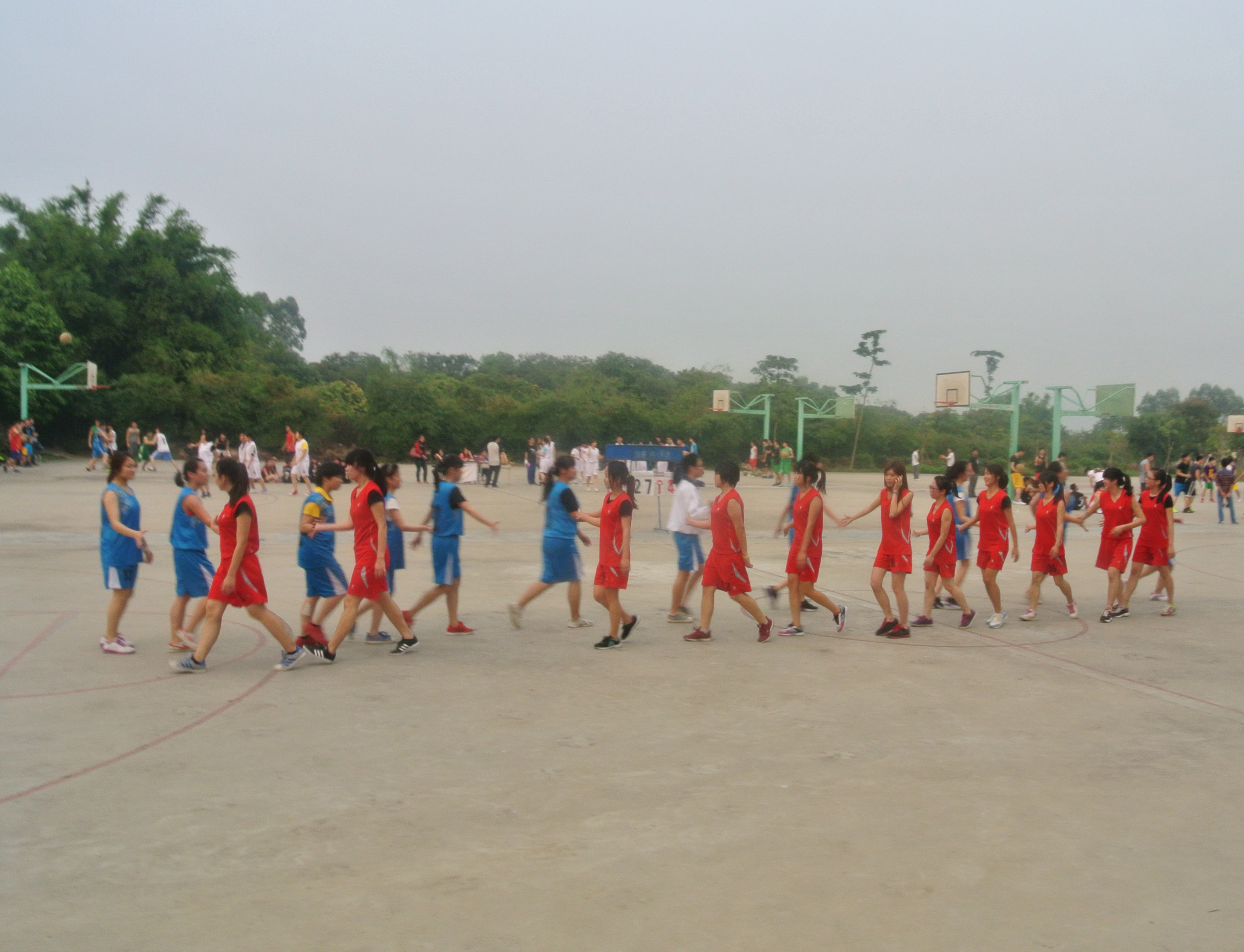 2013年4月15日星期一下午3点35分,华南师范大学增城学院的女篮团队在学校篮球场给大家带来了一场激烈的篮球赛——法律系对阵会计系。