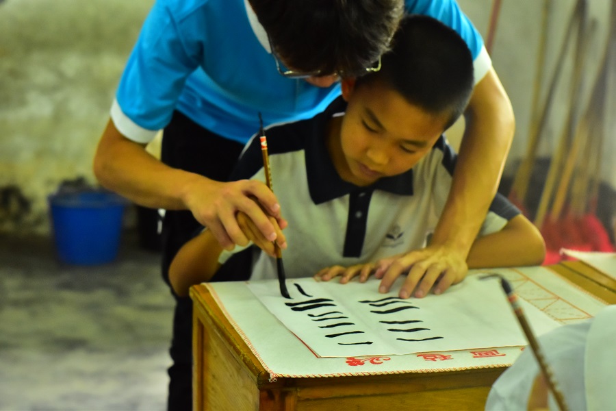 志愿者教学生书法