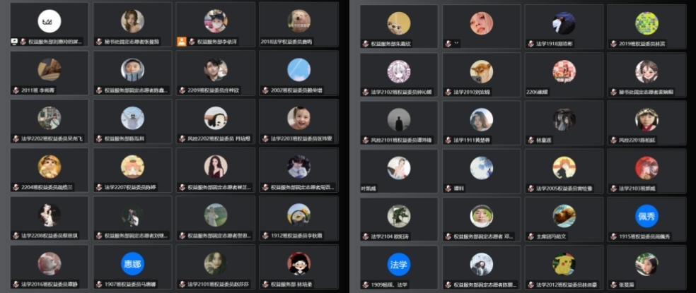 为维护同学们的切身利益,实时反馈学校相关信息,解决同学们在学习与生活中遇到的实际问题,122cc太阳集成游戏学生会权益服务部于12月15日在腾讯会议开展了权益座谈会,出席本次会议的有122cc太阳集成游戏学生会权益服务部全体成员以及全体权益委员。