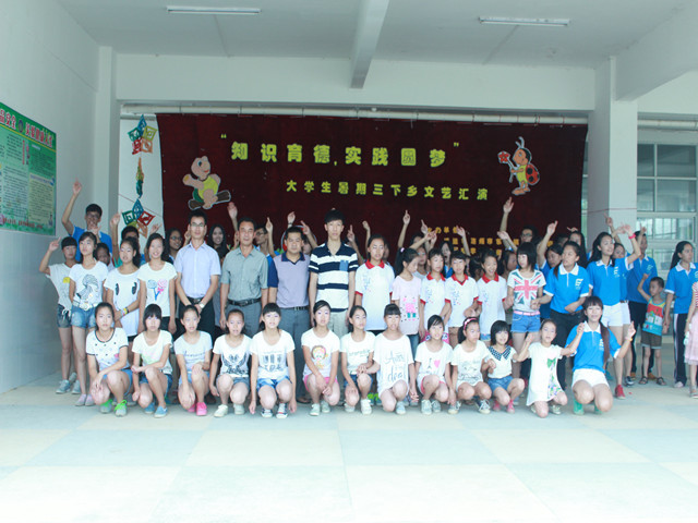 2014年7月18日上午8时,经过法律系阳光普法服务队队员们的精心筹备,一场以 “知识育德,实践圆梦”为主题的文艺汇演在广东省清远市连州市东陂镇西在中心学校隆重上演。出席本次文艺汇演的嘉宾有东陂镇副镇长兼团委书记禤均来,党政办公室主任兼团委副书记陈晓嗣、东陂村村委书记张诚、东陂镇西溪中心学校副校长黄大地、东陂镇团委委员黄炜玮、以及广州商学院法律系暑期“三下乡”社会实践活动指导老师叶小办。