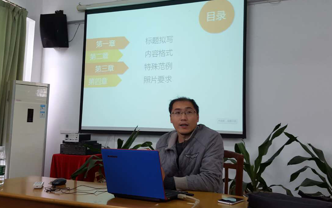 本专题内容主要分为通讯稿的写作和拍照的构图、图像处理的规范两部分。培训伊始,祝建波就此前团学撰写通讯稿存在的问题一一指出并纠正,从而引出正题,讲授撰写通讯稿的格式和技巧。他教授干部采用通讯稿“三段论”的形式进行撰写:首先是标题的拟定,强调标题要浓缩核心内容,突出重点。其次是开头的书写,需要包括时间、地点、人物、活动目的等要素。然后是通讯稿的内容格式,他指出绝大多数的问题体现在“活动流程”的撰写中,祝建波对此部分进行了深刻的讲解,指出需分清主次,按层次写。最后是结尾,主要强调了要对通讯稿主题的升华。