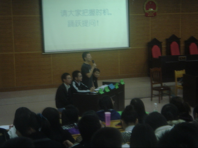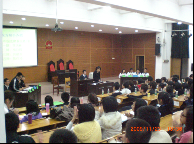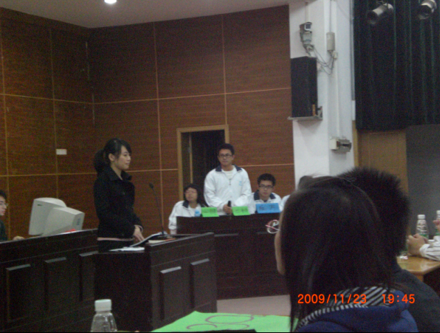 2009年11月23日晚7:30——9:30法律系在A栋2楼模拟法庭举行09级法律系“新生杯”辩论赛决赛,经过了法律系学生会学习部的努力与法律系辩论队的协助,“新生杯”辩论赛终于顺利地拉下了帷幕。
