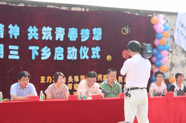 2013年7月9日上午9点,华南师范大学增城学院法律系暑期“三下乡”社会实践活动启动仪式在潮南区两英镇陈库村陈库学校隆重举行。这次启动仪式不但得到了潮南区两英镇政府的高度重视,陈库学校领导班子的大力帮助和支持,而且还引来了当地电视台记者对大学生暑期“三下乡”社会实践活动的关注,并对本次实践活动进行跟踪报道。