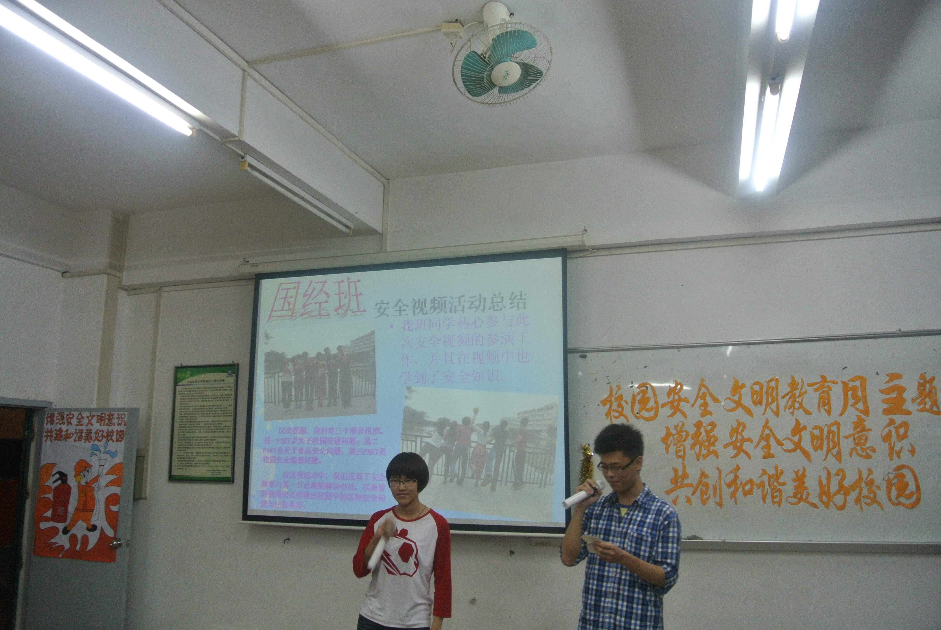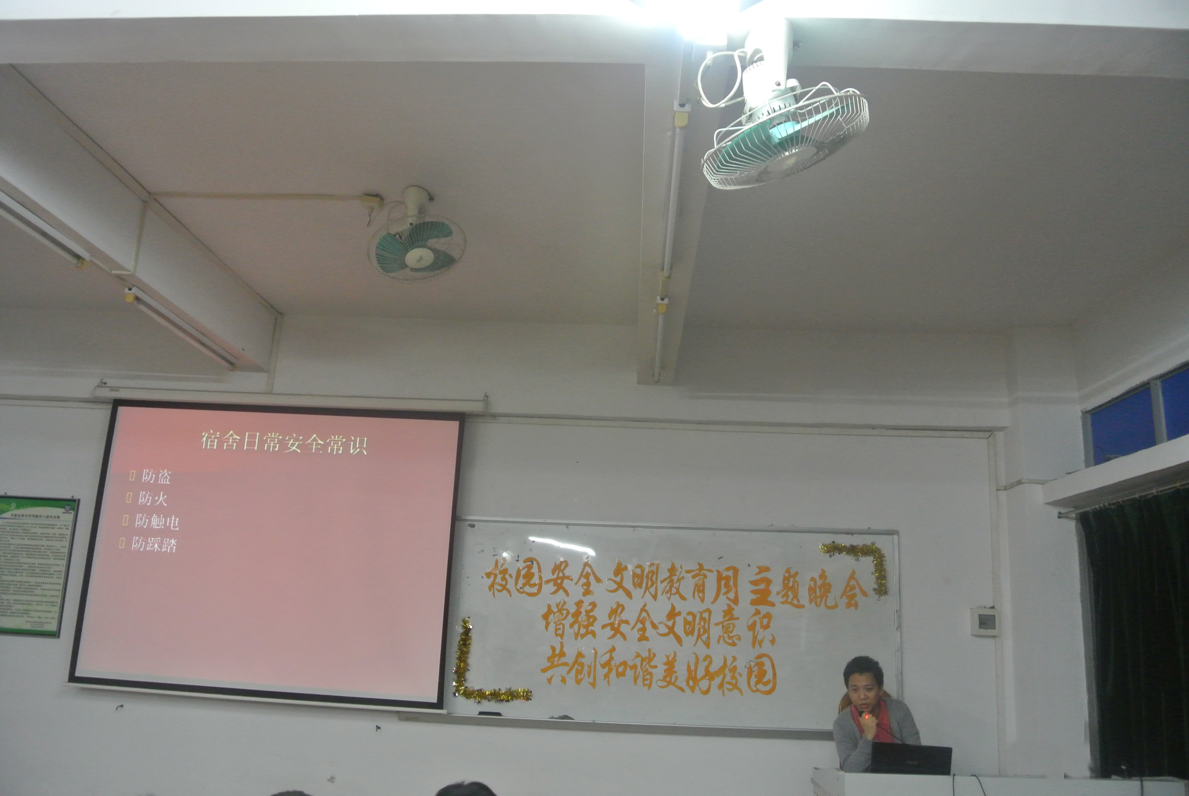 2013年4月26日星期五晚上19点20分,由法律系学生会保卫部主办的“增强安全文明意识,共建和谐美好校园”的校园安全文明教育月主题晚会于C203隆重举行。出席本次晚会的有法律系学生会指导老师叶小办、法律系11级辅导员祝建波、法律系学生会主席赖伟杰﹑副主席秦乐璋、秘书长吴美妙。