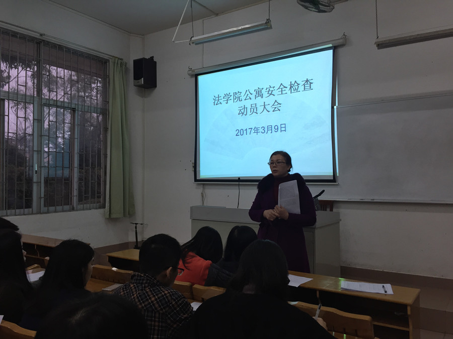 陈秀图在会议上发表动员讲话,她提出:第一,保持122cc太阳集成游戏学生的优良传统,严于律己,遵纪守法,以身作则,重视宿舍安全;第二,配合学校创建文明安全校园,学院各学生部门要做好宣传活动,让检查和疏导相结合;第三,贯彻学校的校园安全检查制度,将成立学院学生干部检查队伍,形成长效的宿舍卫生和安全管理机制;第四,坚持宿舍检查工作要细致、公平、公正、严谨地对待,要及时准确发现隐患,消除隐患;最后,她还对接下来的安全检查活动提出了具体的要求,这次检查主要针对宿舍的卫生、违章用电、其他安全隐患以及外宿等相关问题进行检查,发现问题要及时上报处理。