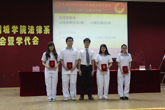 在学院及系领导的高度重视和指导下,经过了紧张有序地筹备工作后,我系第六次团代会暨学代会于2013年6月2日18:30在A206正式拉开序幕,嘉宾及学生代表悉数出席,出席本次大会的嘉宾主要有学院团委副书记黄莉霞、法律系团委书记张仁瀞、法律系学生会指导老师叶小办、法律系辅导员梁韵菁和祝建波,大会由法律系团委秘书长陈冬旭主持。