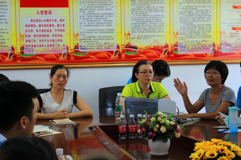 中午13:00,五和小学德育工作领导黎镕仪、陈娜老师,服务队指导老师陈秀图组织召开了工作会议。会上,五和小学陈娜老师首先代表校领导、老师和同学们欢迎服务队到校开展活动,并为志愿者们做简单的工作交接以及工作方面的指导。她强调,活动期间必须要把安全放在第一位,要求服务队的“小老师”们必须要转变角色,严格考勤制度,确保学生们能安全返校、安全回家。同时,陈娜对未来十天工作的开班仪式、见面会、课程安排以及结业典礼等活动做了详尽的讲解和安排。陈娜指出要让队员们组织分配好自己负责班级的工作,安排好每天上课的内容,为未来十天做好准备,同时注意让学生们带成果作品回家,确保每一个小学生都能在本次活动中有所收获。陈娜特别强调纪律问题,志愿者们驾驭好课堂,保证上课质量。她强调要把握好与学生之间的距离,既不能太亲近,亦不能太严肃,要在学生面前树立老师的威严。而后,五和小学黎镕仪老师表示本次暑期“三下乡”社会实践活动的目的在于给五和小学学生提供丰富的兴趣课程之外,同时使广州商学院阳光普法服务队志愿者们得到社会实践锻炼。最后,陈秀图书记为会议做总结。她特别强调“三下乡”活动旨在服务学生,锻炼自我。希望志愿者们通过自身的努力思考,总结经验,动用团队的智慧解决困难,彰显团队的力量,树立团队精神。并祝愿本次暑期“三下乡”社会实践活动能够顺利开展。