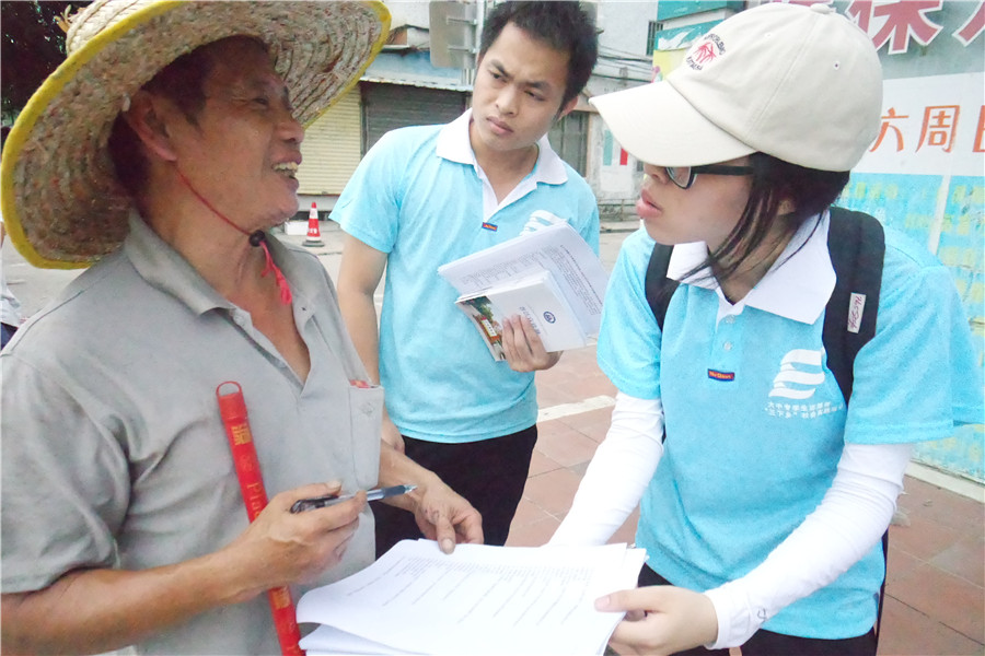 阳光普法服务队走访乡村地区,开展“走进基层,关注民生”的社会实践调研,宣传环境保护,提高村民对生态保护的意识;另外,在进行实践调研的同时派发普法宣传册,注重推进法治精神的宣传,有利于提高村民的法治意识。