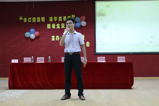 风习习,带来了秋天的感觉。在如此舒适的天气下,法律系团委和学生会于2013年10月12日晚7:30在教学楼A209联合举办“举灯照路明,法学携手行”新老生交流会。到场的嘉宾主要有法律系团委书记叶小办,法律系团委副书记、学生会指导老师祝建波,以及各学生组织的学生干部和优秀学生代表。