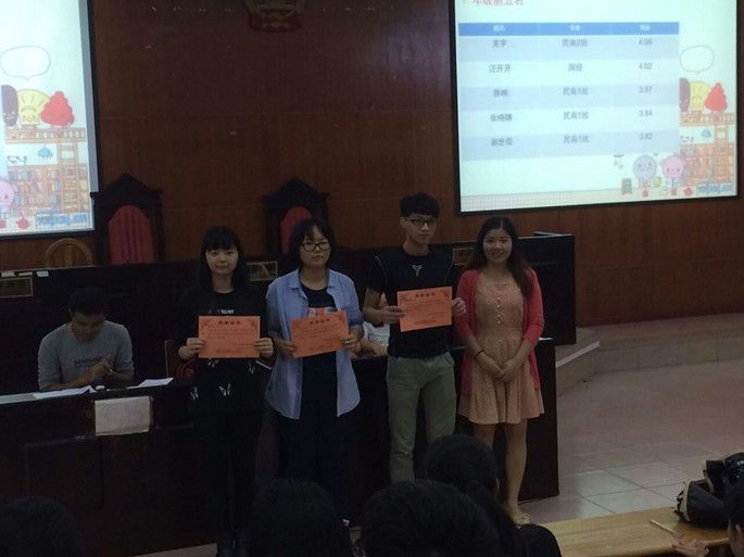 首先,辅导员张仁瀞通过PPT展示同学们大一第二学期和大二第一学期成绩的整体情况 ,对取得优异成绩的个人和班集体予以充分肯定,同时通过数据对比分析,指出同学们在学习方面的不足之处以及未来的努力方向。随后,张仁瀞为在上一学年获得优异成绩和年级学生个人(年级前五名,班级前三名)、宿舍(“学霸宿舍”,宿舍成员绩点均3.0以上)以及班级(优良学风班,3.0以上绩点人数所在比例最大的班级)进行表彰。她表示,希望通过表彰先进树立学习榜样,努力营造良好的学习风气,进一步激发同学们主动学习的积极性,向榜样看齐,取得更大的进步。此外,张仁瀞还为同学们普遍关心的申请社会实践课程学分、国家司法考试、毕业见习和实习、考研准备等一系列问题做出了详细解答,并对法律系2014级下一阶段的工作、学习、生活方面提出了更高的要求和作出了具体的部署。