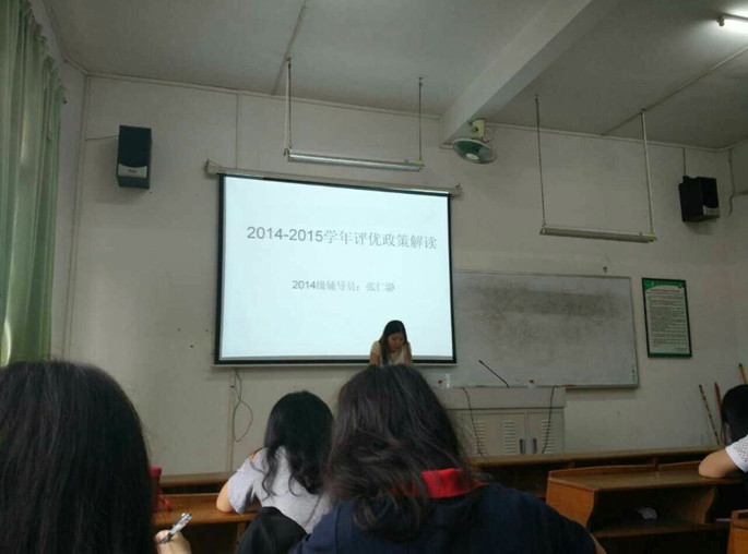 为了让更多的同学充分了解和学习学院的评优暂行办法,更加准确高效地完成评优工作,9月19日中午12:20,法律系2014级在辅导员张仁瀞老师的组织下在教学楼D2-104召开2014-2015学年评优政策解读会议。出席本次会议的成员有法律系2014级全体级委、班委、学生党员代表、团员代表和普通学生代表。2014级辅导员张仁瀞主持本次会议并对评优事项作出详细的解读。