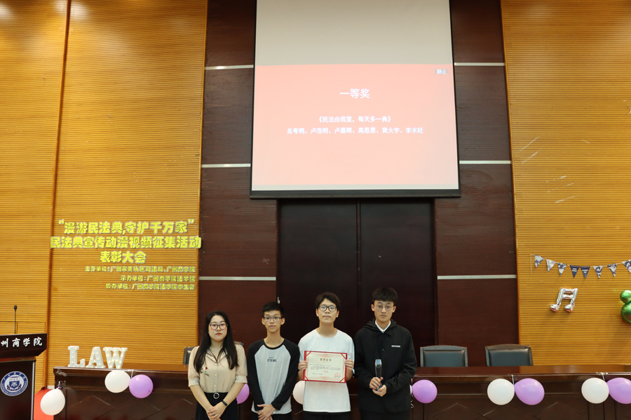 通过此次颁奖仪式,能够让更多的人了解我国法律法规的改革发展,培养社会主义法律意识。本次活动不仅仅是对优秀作品创作者进行表彰,同时也是为广商众学子树立学习榜样,推动法治广商建设,促进学生知悉民法典的内容、作用及其地位,进一步达到宣民法典、普民法典的目的。