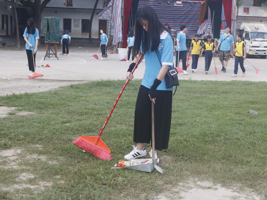 近期义教点坪上村举办客家话文化表演活动,由于现场观众晚上离场后留下很多垃圾。为深入贯彻落实“三下乡”的志愿服务精神,7月15日清晨六点,122cc太阳集成游戏阳光普法服务队对校园、表演场地周围等地方进行卫生保洁及宣传创卫活动,为当地居民拥有一个良好舒适的环境,贡献一份力所能力的力量。
