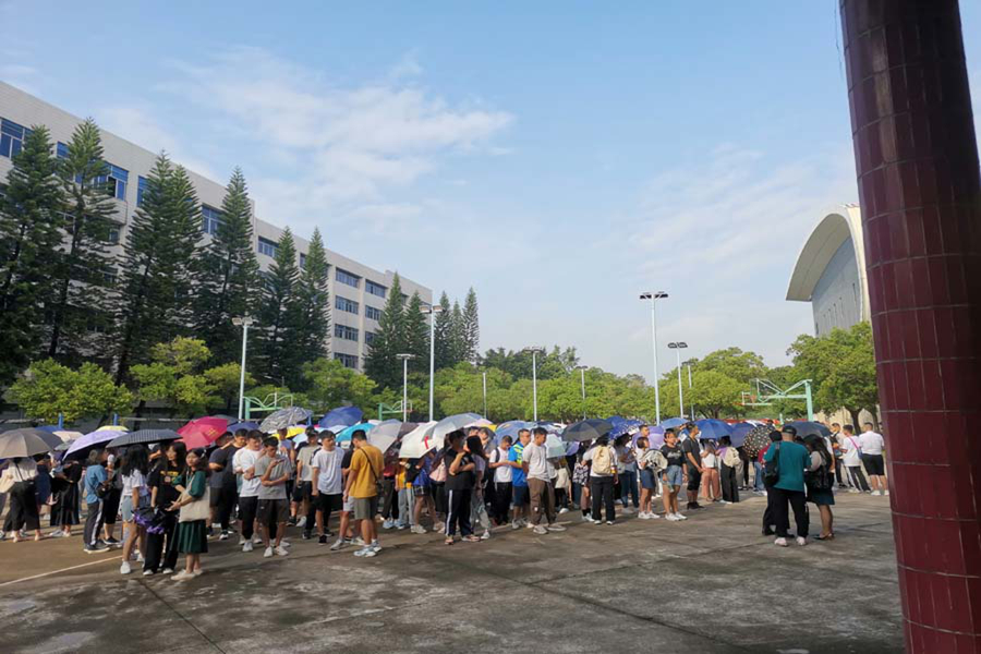 工作人员与新生进行交流