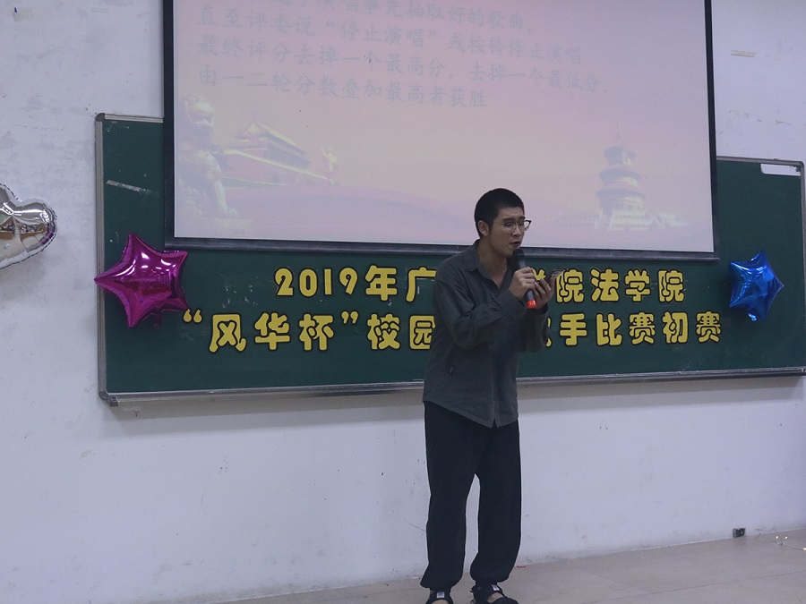 回忆烽火历程,感受岁月如诗;同绘山河锦绣,歌响祖国颂歌。适逢新中国70周年华诞,为丰富校园文化生活、推动广商精神文明建设、激发同学们爱国爱党的热情,同时也为广商学子提供一个发掘潜力、展现自我才华的舞台。122cc太阳集成游戏学生会于11月15日晚在四教308举行校园十大歌手初赛,参加本次活动的嘉宾李华学、覃业敏。