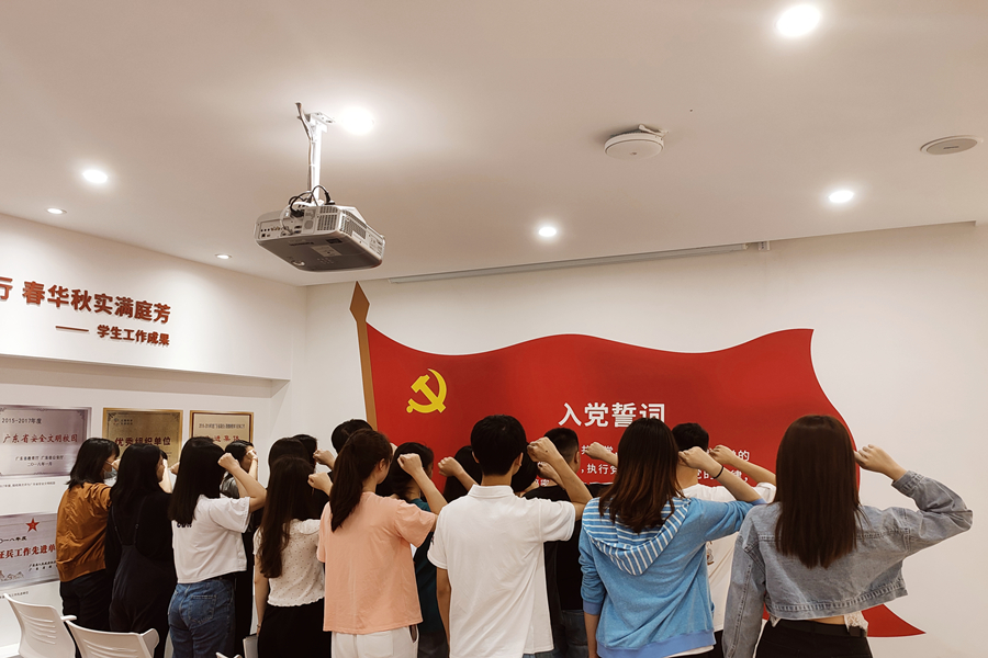 本次主题党日活动共分为两个部分。首先是参观思想政治基地;“青思苑”,它由“三馆、一中心、一园、一厅、一廊+多个党团活动室”组成,学生党员一行人在此一一参观并认真学习基地展示内容,在“四史”答题互动机上挑战党史知识知多少,并随时间线重温了中国共产党为夺取革命胜利走过的光辉历程,进一步感受国家的蓬勃发展和取得的重大成果,使学生党员受到了一次深刻的党性教育,进一步加深了对习近平新时代中国特色社会主义思想的理解,更加坚定了为党的事业奋斗终身的决心。然后是重温入党誓词;支部组织委员黄颖琦带领大家重温入党的信念和决心,激励我们不断进取,在自己的岗位上实现入党誓词,充分发挥先锋模范作用,永葆共产党员本色。