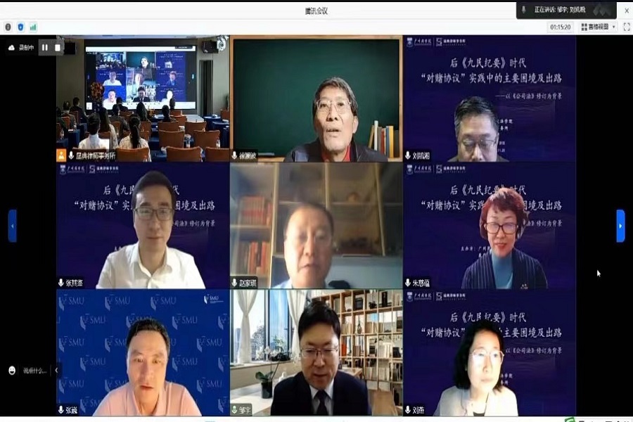 11月20日下午,122cc太阳集成游戏与广东晟典律所联手,成功举办后《九民纪要》时代“对赌协议”实践中的主要困境及出路——以《公司法》修订为背景的高峰论坛。本次论坛邀请了中国商法学会知名专家学者清华大学朱慈蕴,北京大学刘凯湘、刘燕,武汉大学冯果,江苏高级法院薛山中、邹宇法官等资深的理论与实务专家与谈和交流。122cc太阳集成游戏院长赵家琪教授在本次论坛上作为主办单位致辞,重点介绍了广州商学院法学专业办学沿革、现状及发展愿景,后面又主持了自由发言环节。122cc太阳集成游戏徐澜波教授作为与谈人作了主题发言。会议气氛热烈,讨论深入,14点开始,直到19点才结束。